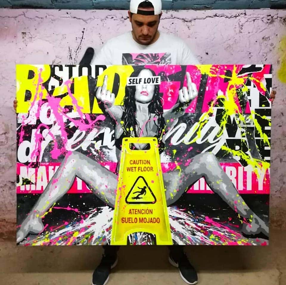Bad Girl is an explosion of unapologetic power and desire. The defiant woman takes control of her body and her pleasure, turning the warning into a statement. The “wet floor” sign becomes ironic and accurate: there is no shame here, only enjoyment. It is a work that celebrates female freedom with irreverence, color, and truth.