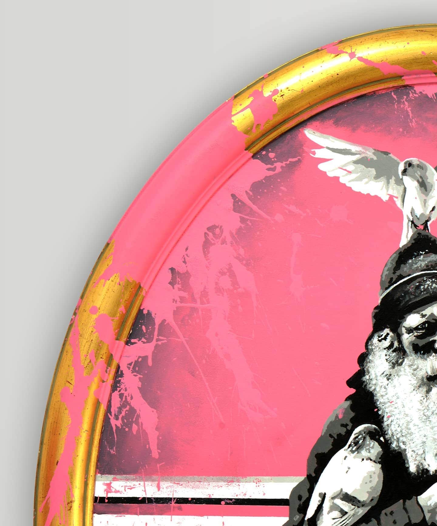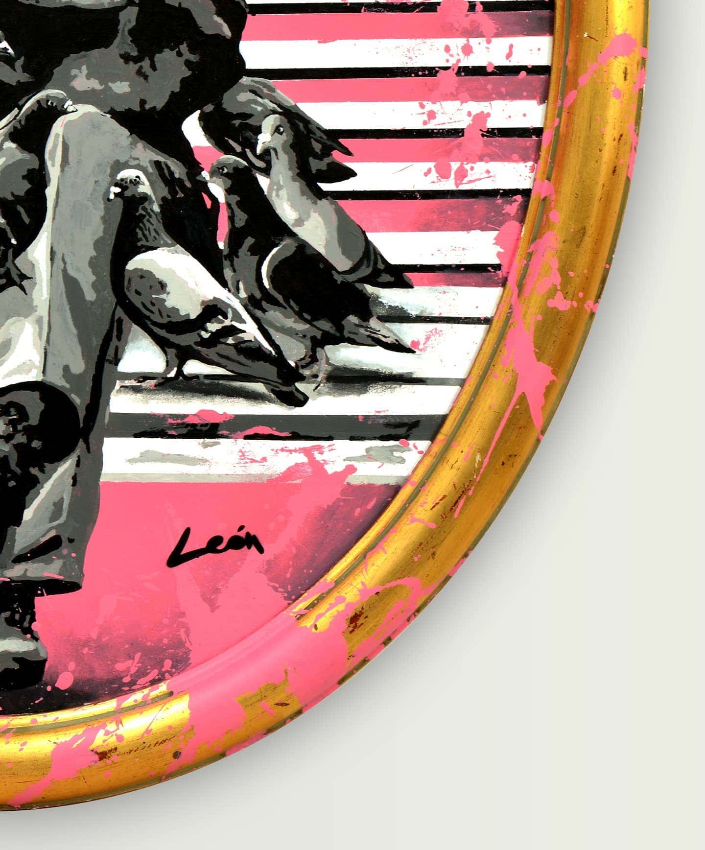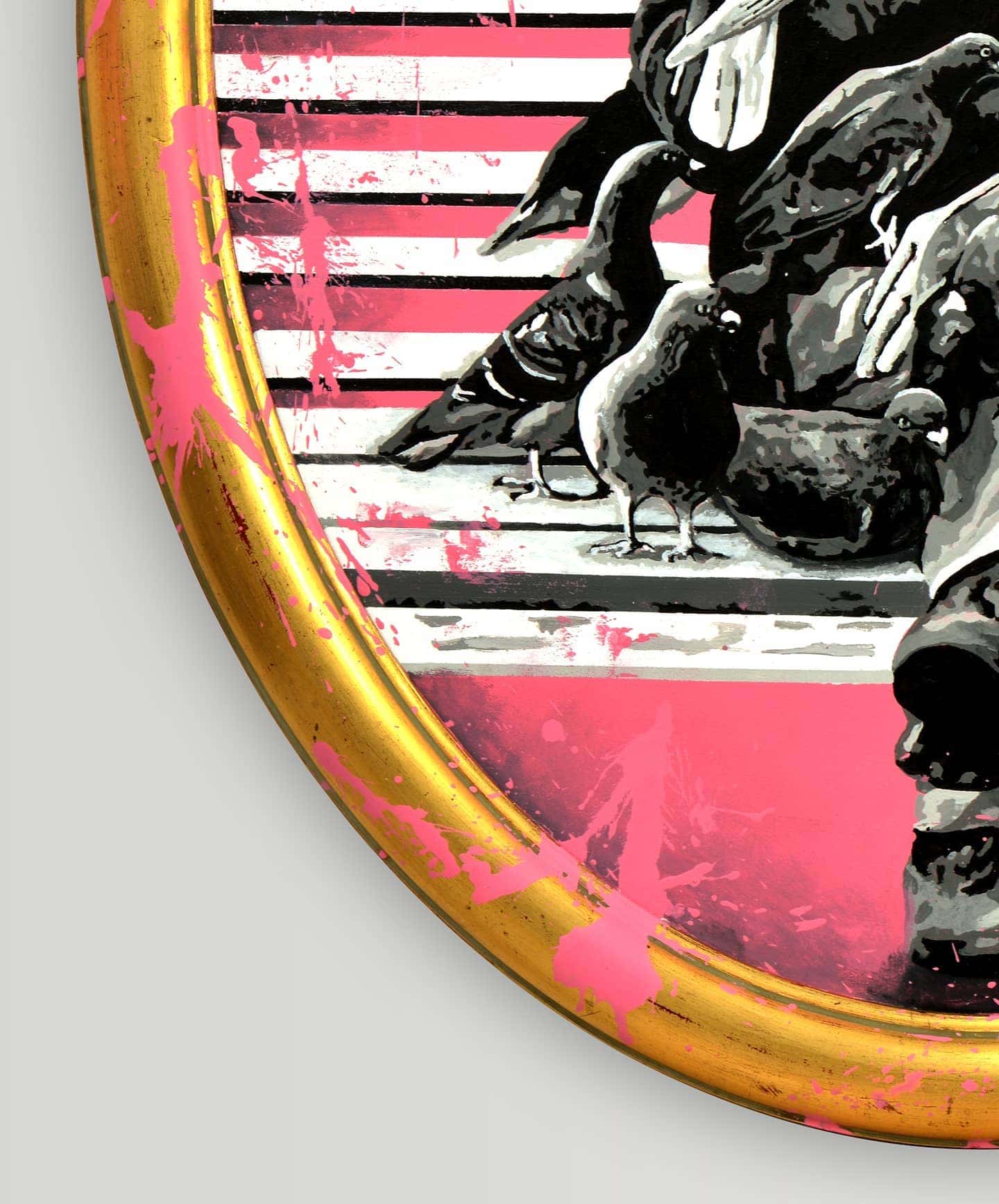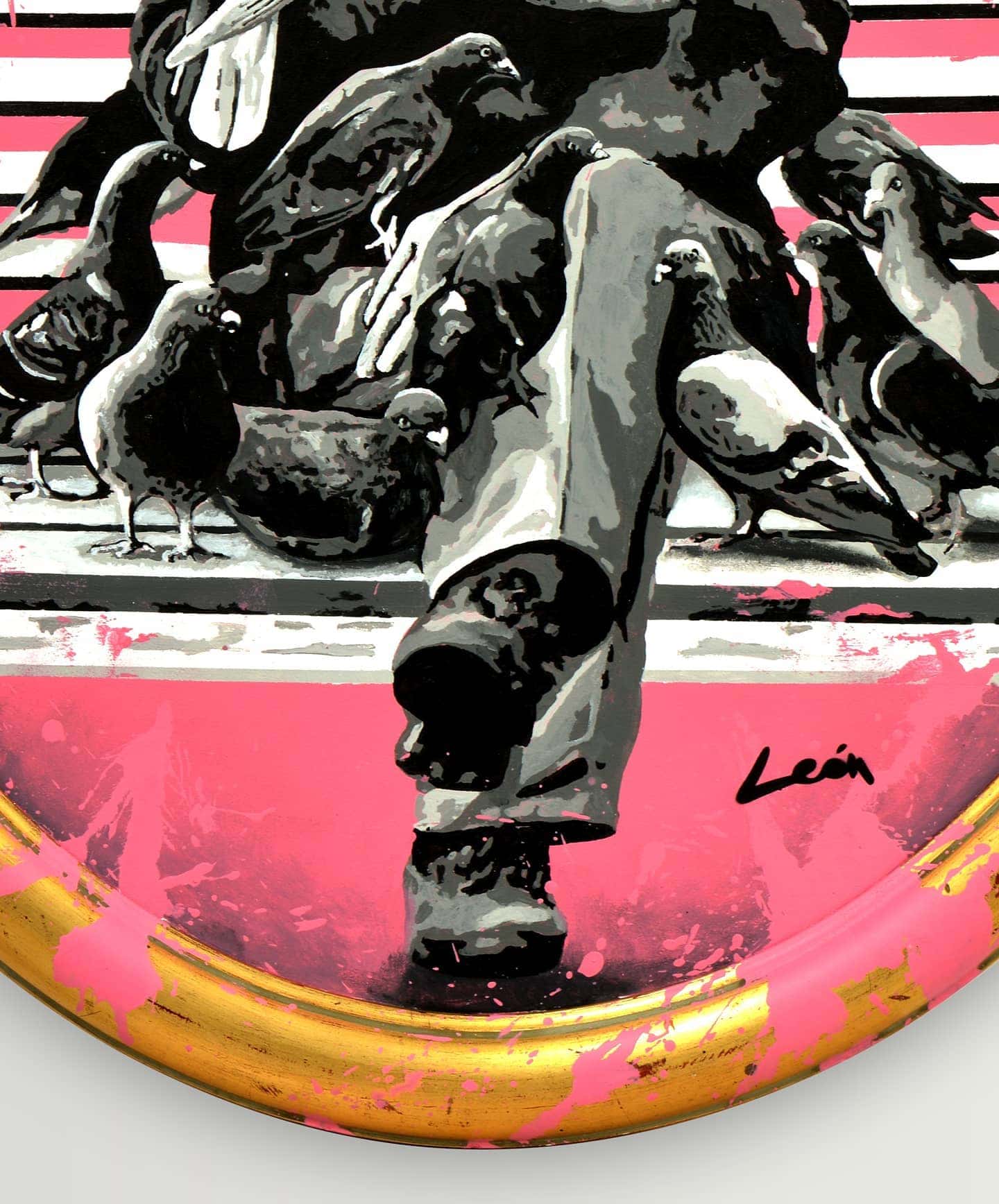 A homeless man sits in silence, covered by pigeons that, as they land on him, draw the shape of a Christmas tree. At the top, a white pigeon acts as a star. The image evokes the true Christmas spirit: peace, hope, and dignity even in solitude and oblivion.