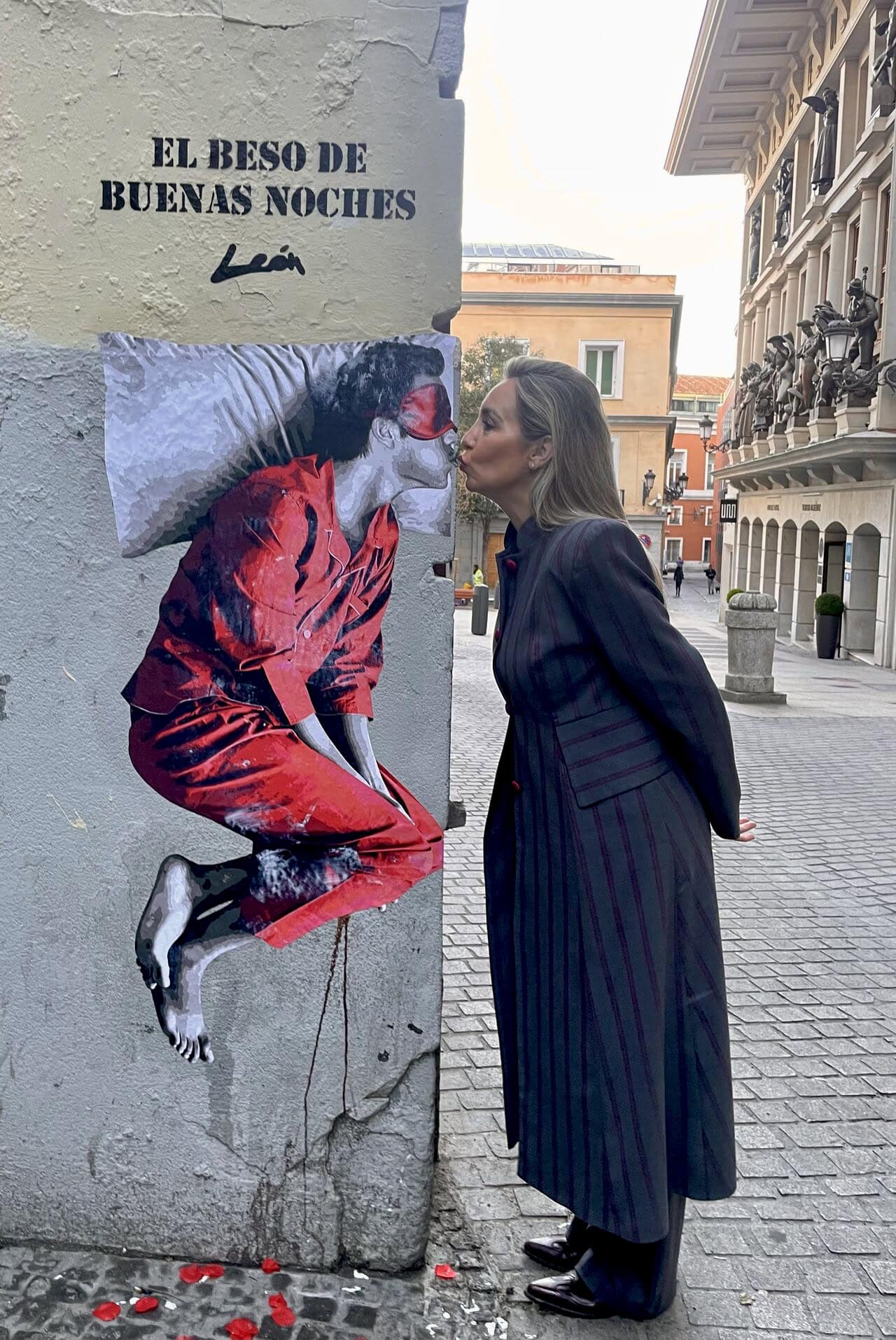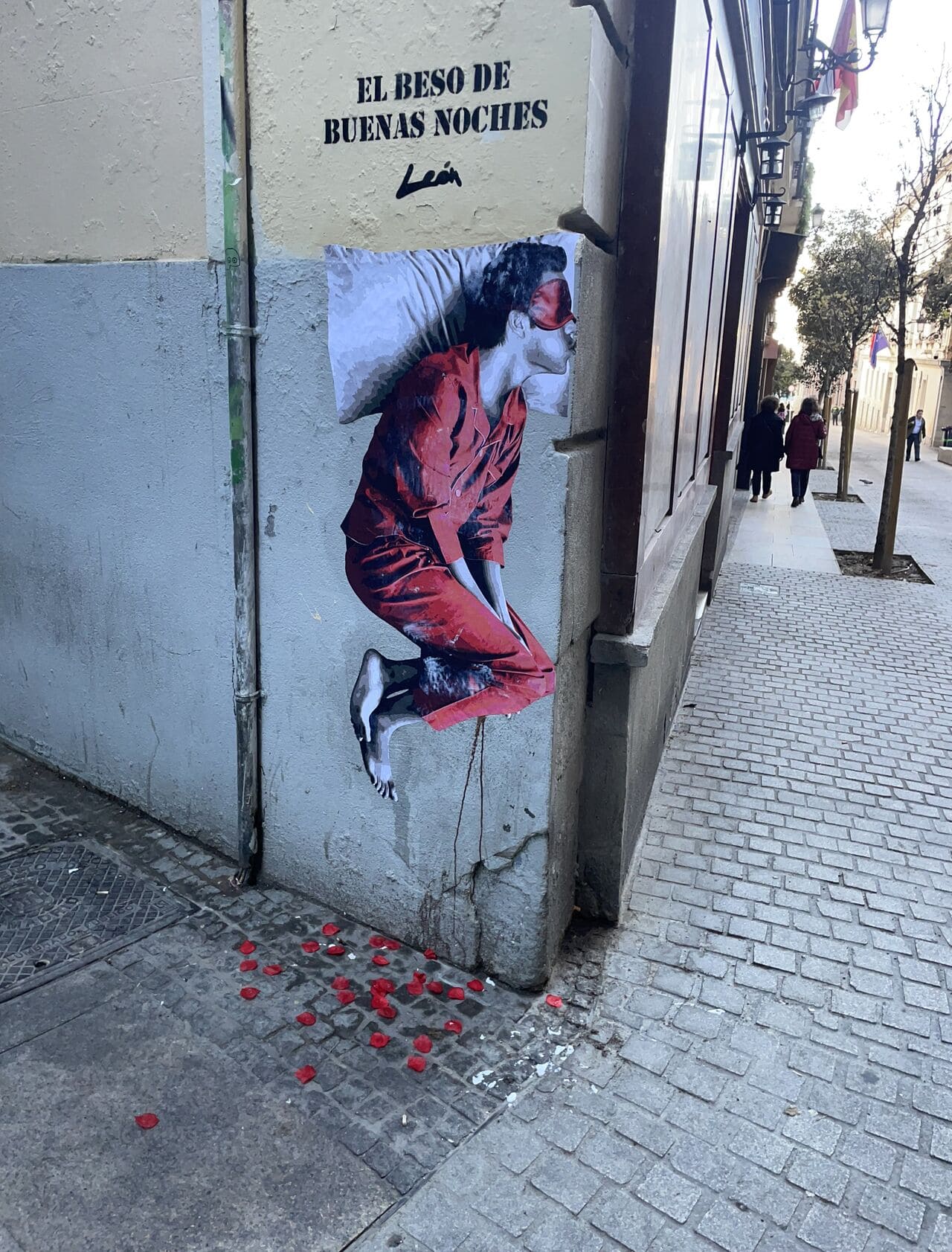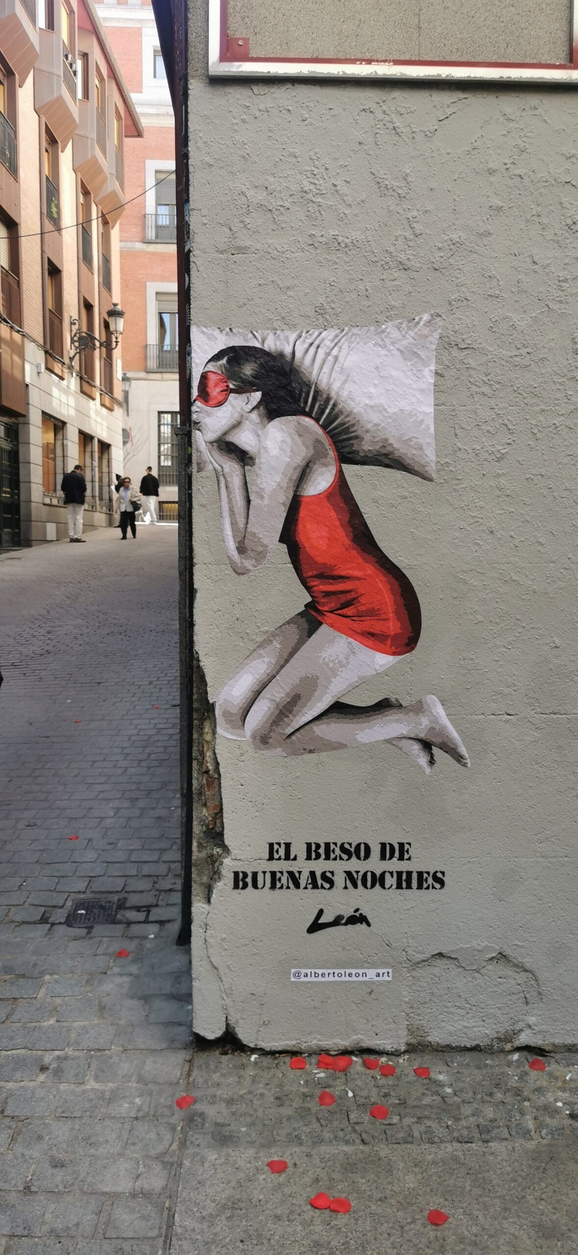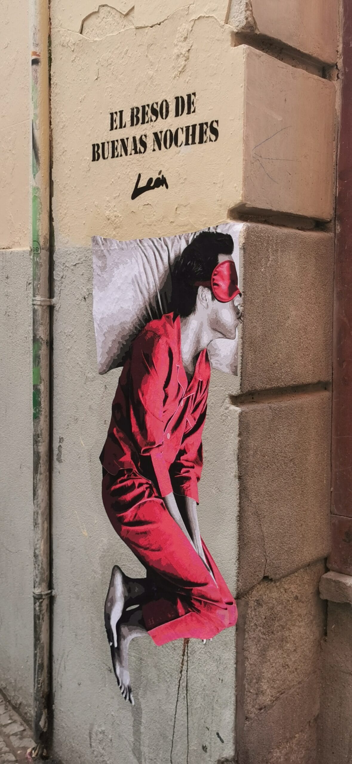 Mural of “The Goodnight Kiss” made on Calle de la Paz, 6 in the heart of Madrid for the brand “Pikolin.”