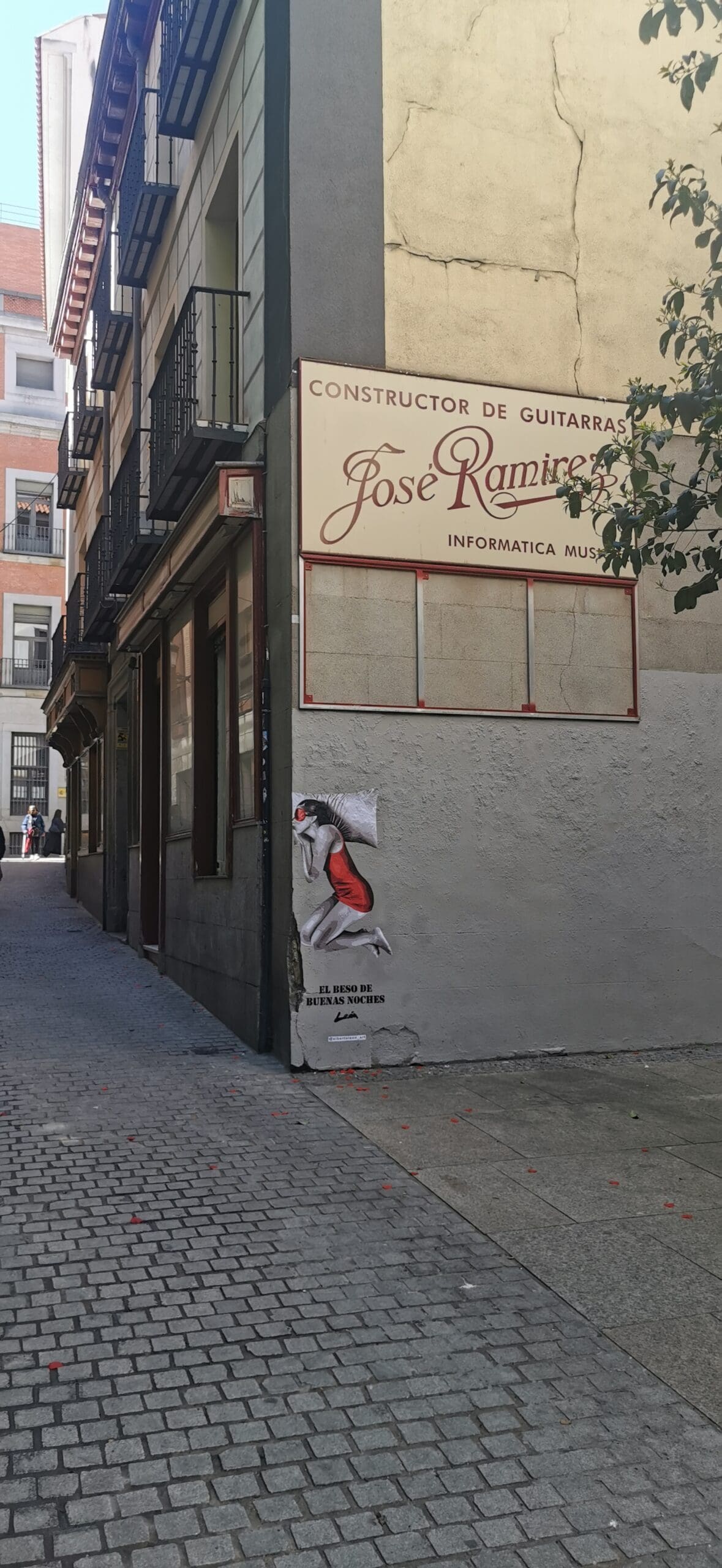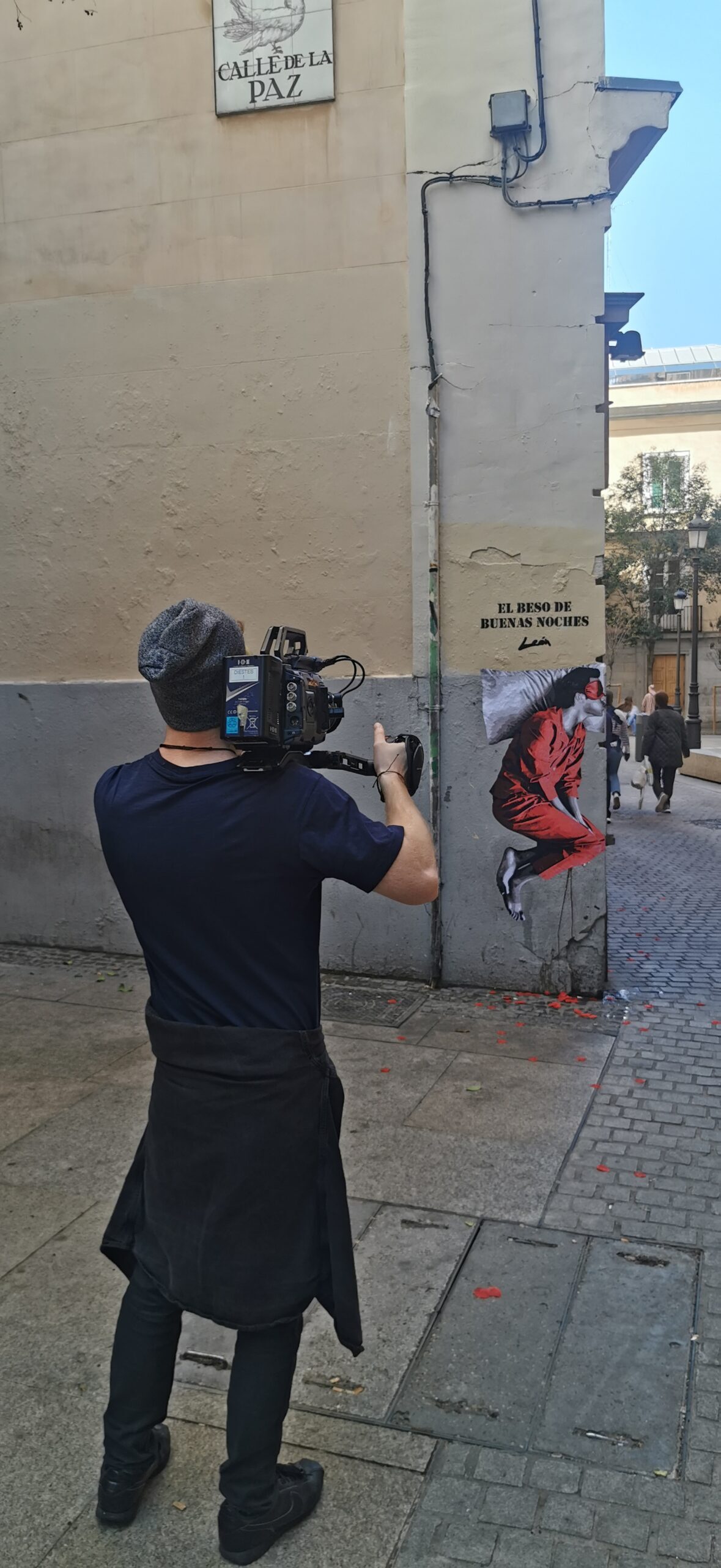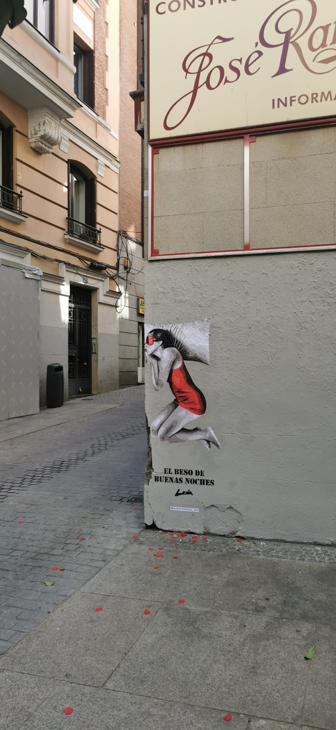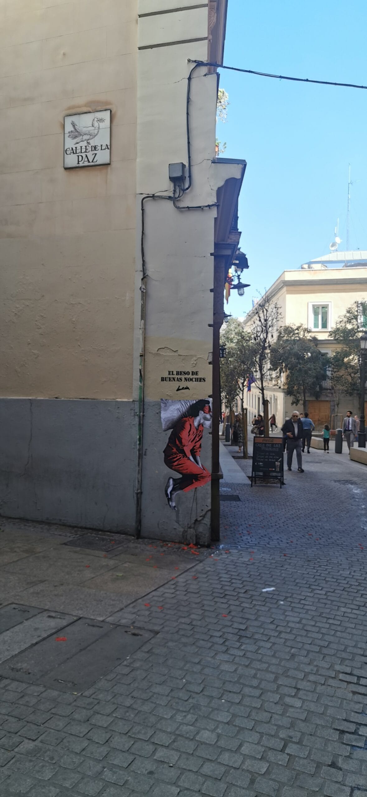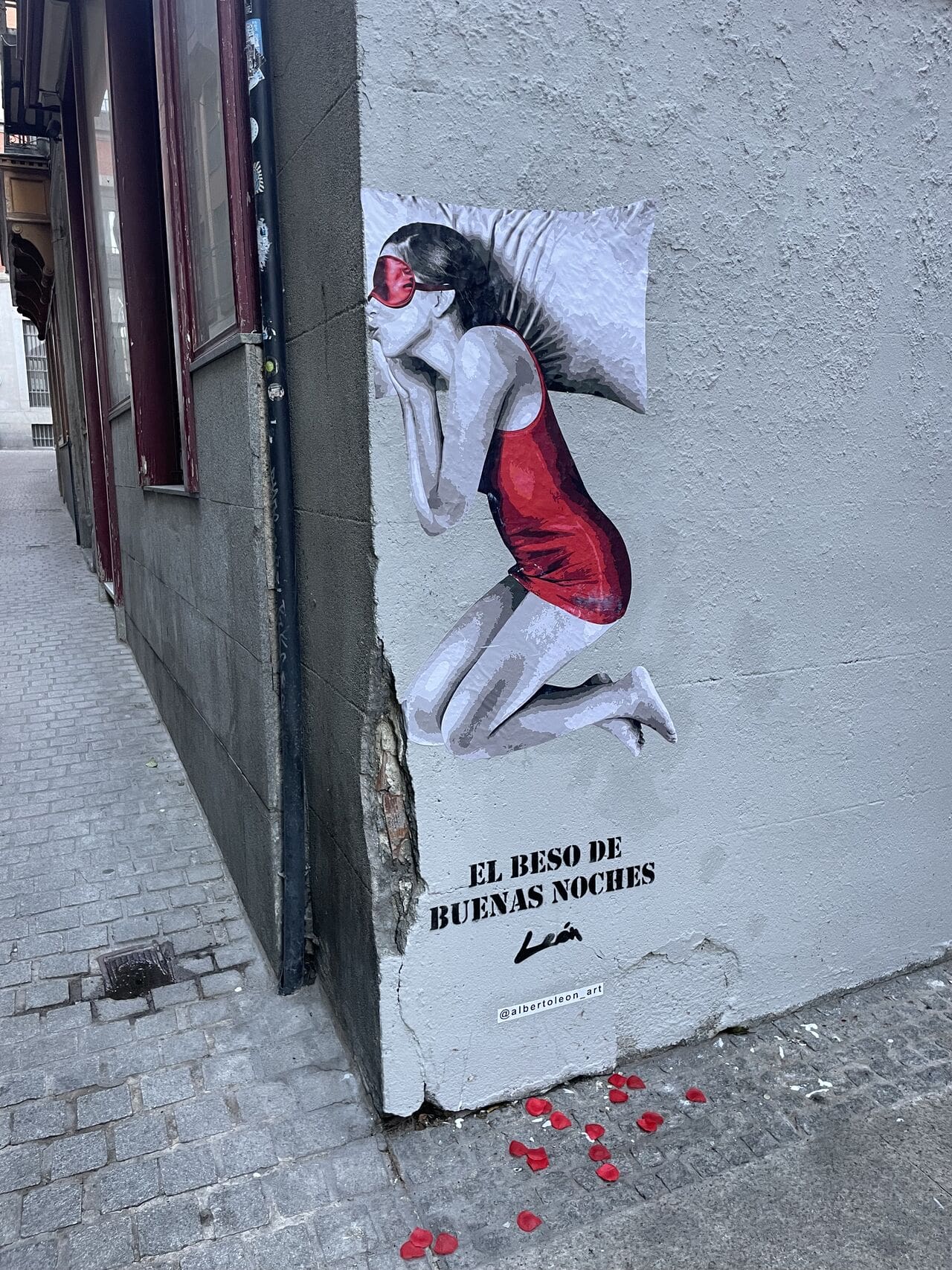 Mural of “The Goodnight Kiss” made on Calle de la Paz, 6 in the heart of Madrid for the brand “Pikolin.”