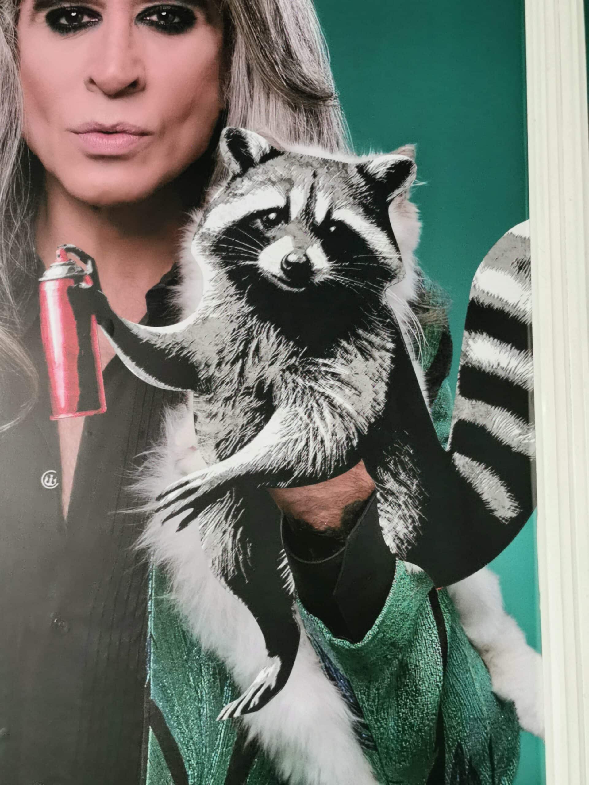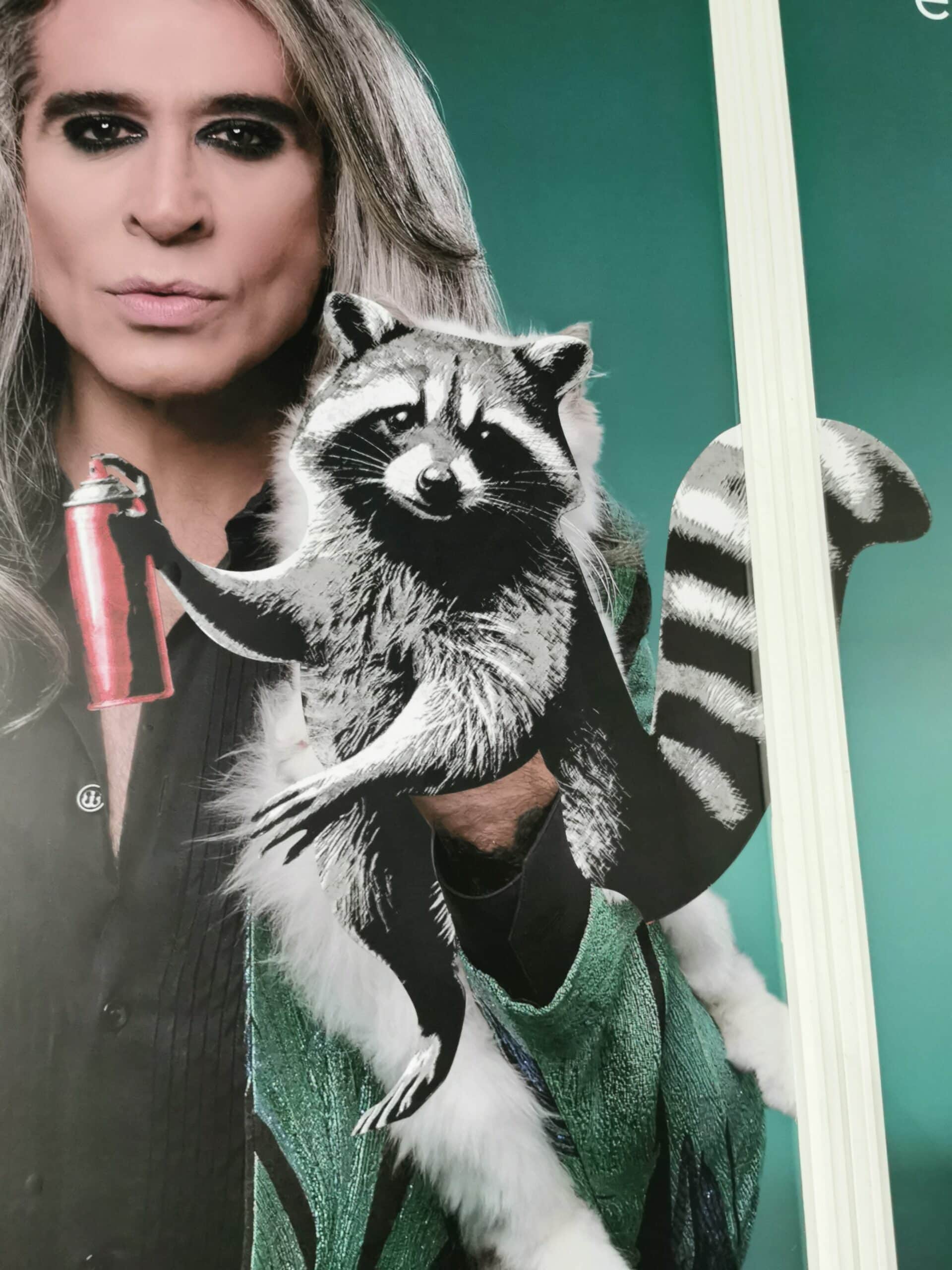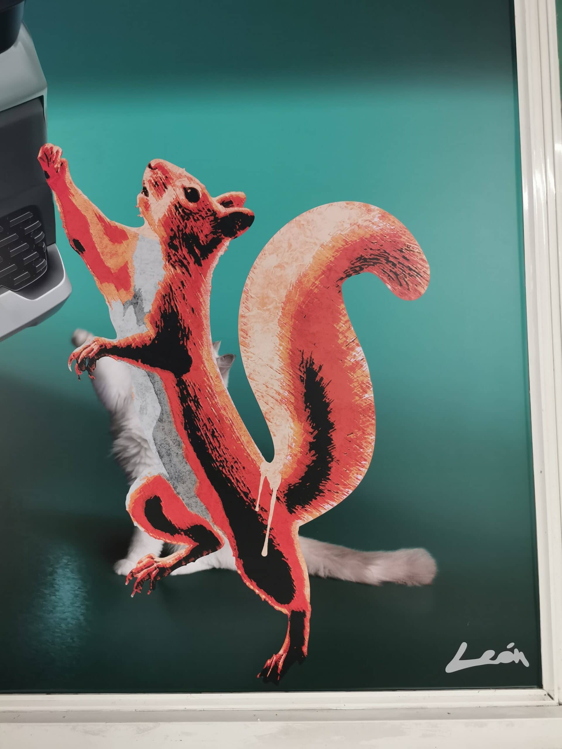 In his intervention, the artist proposed a provocative visual game: crossing out keywords, replacing them with others that invite reflection, and placing animals other than the cat within the scene, challenging the central concept and taking it to another level of interpretation.