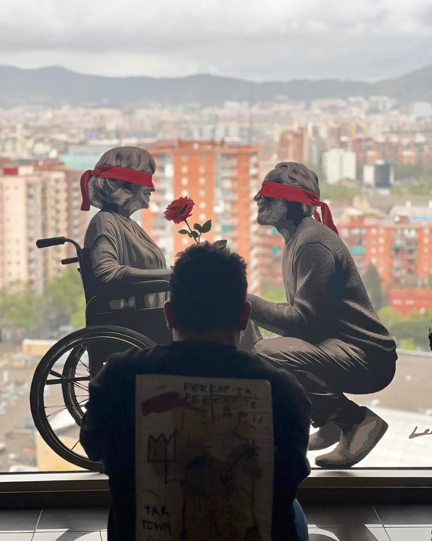 It’s the title of my second piece located in the heart of Hilton Diagonal Mar Barcelona (15th floor), where I showcase one of Hilton’s values: its commitment to inclusivity. This piece encourages reflection on overcoming the barriers faced by people with functional diversity.