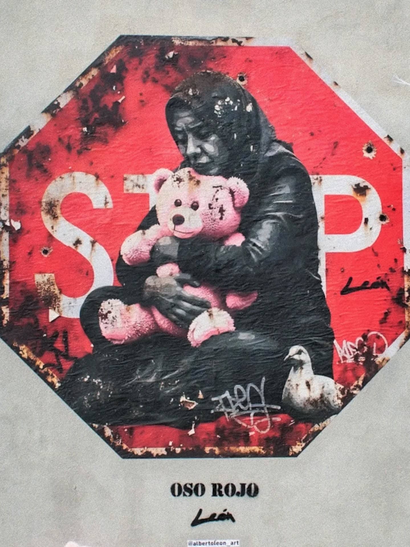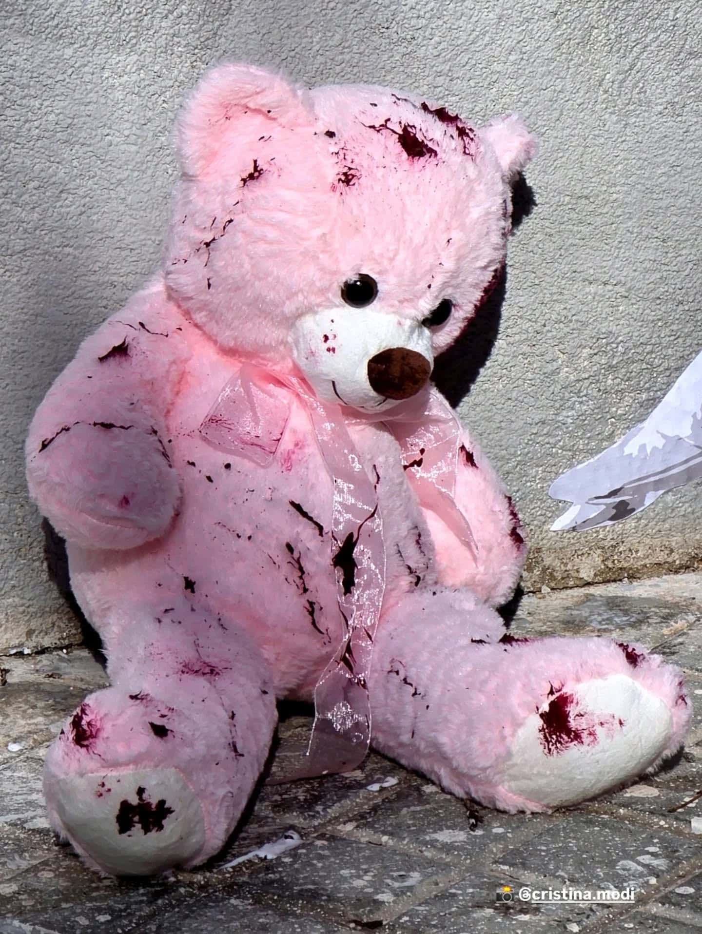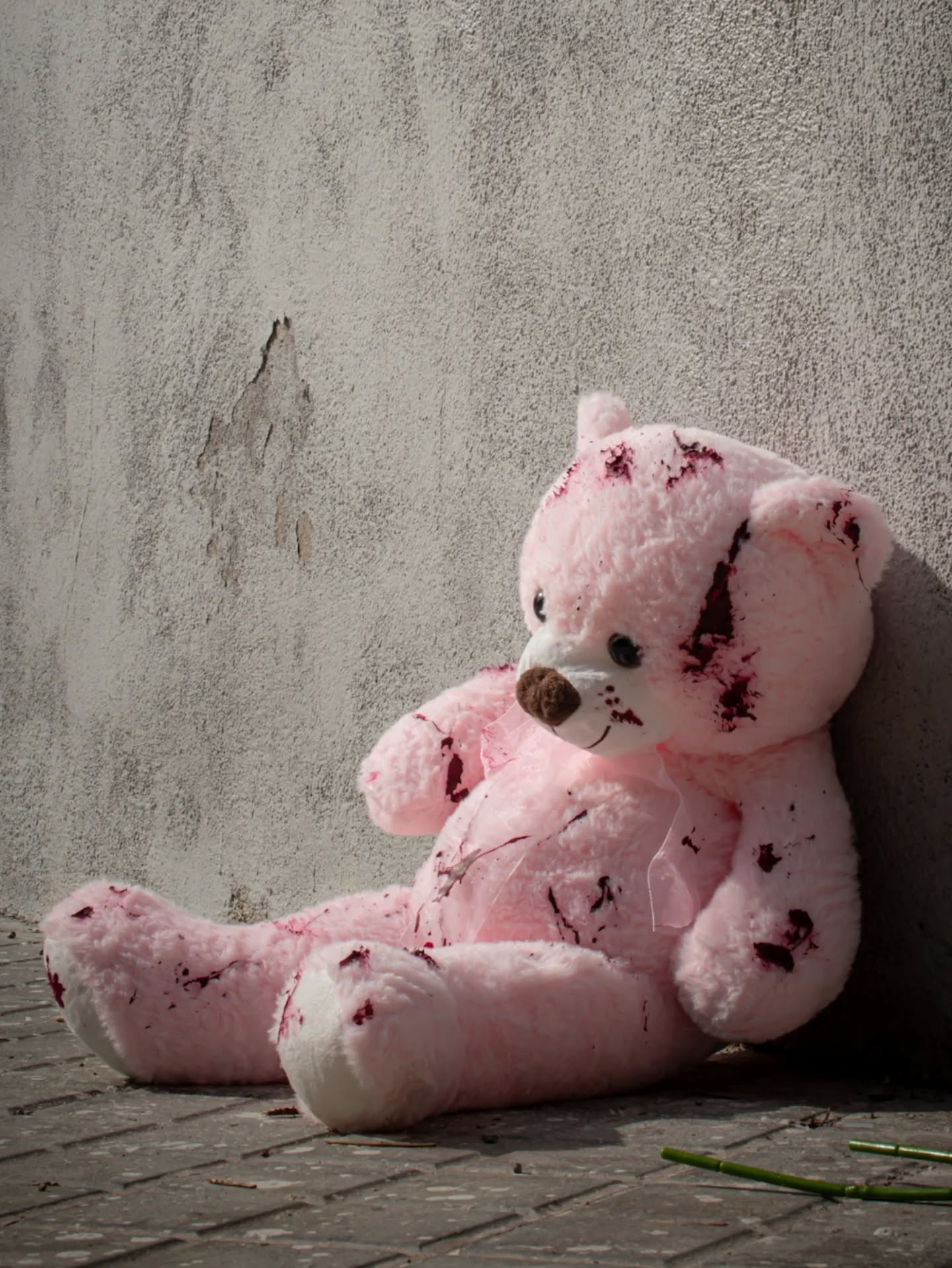 El peluche rosa (Oso rojo) , representa la inocencia manchada por la violencia, el vacío que se queda pero también la ternura que resiste.