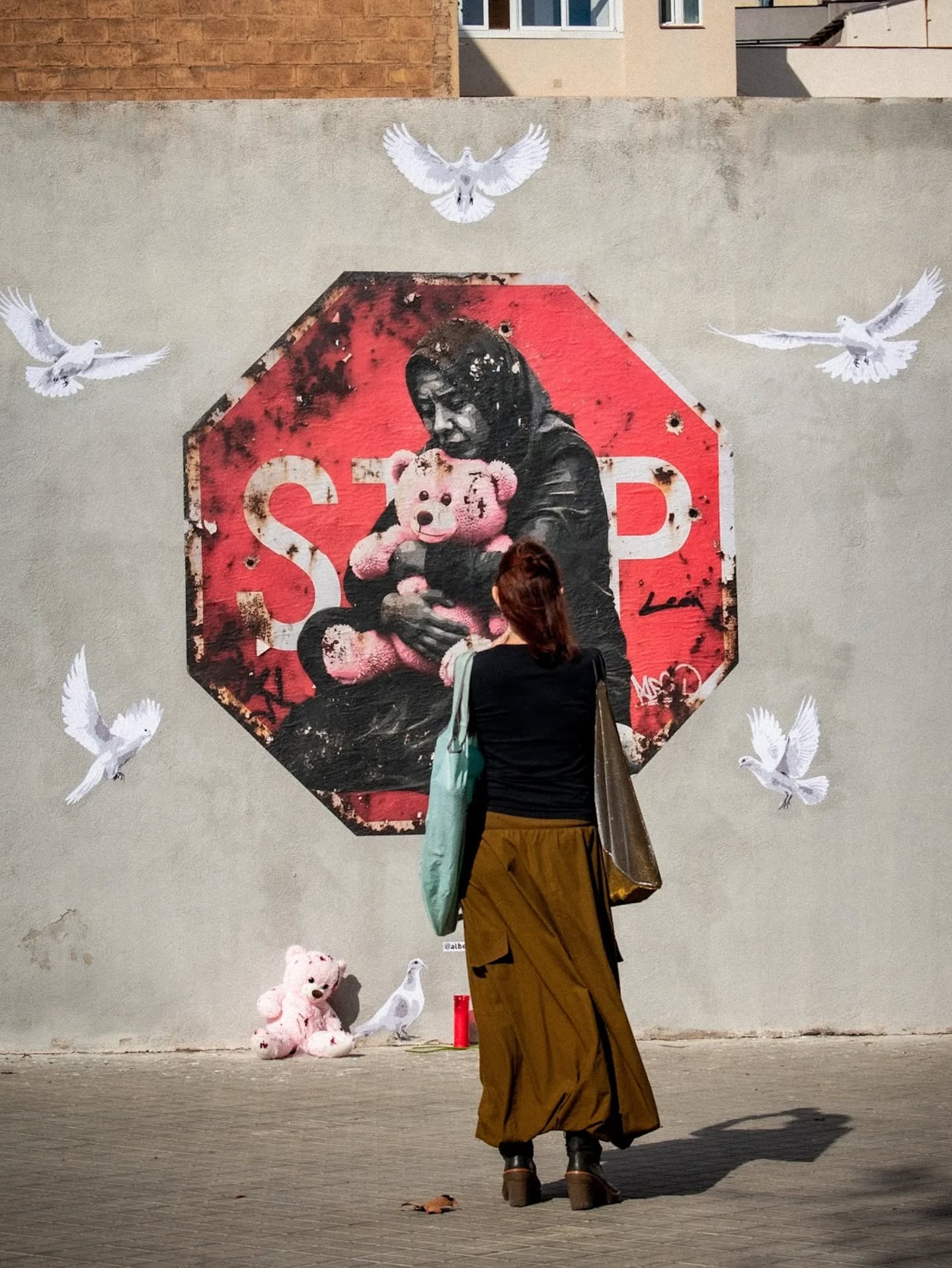 Este mural habla del silencio que queda cuando la guerra se detiene, pero el dolor persiste.